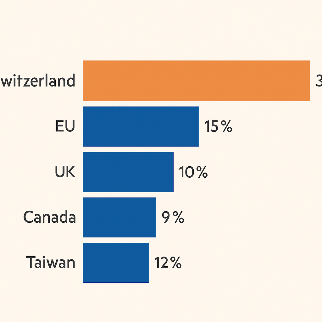 The disparity in treatment has raised eyebrows. The EU negotiated an average rate of 15%, the UK secured 10%, and Taiwan capped tariffs at 20% with phased exemptions. Switzerland, by contrast, appears isolated.